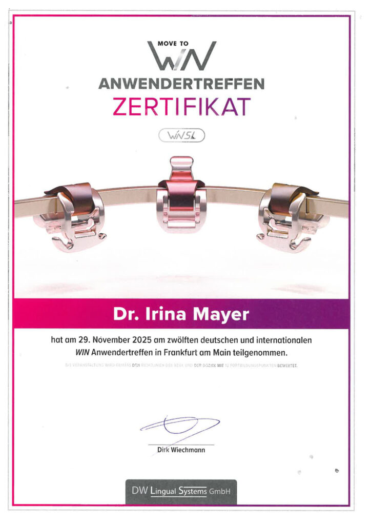 Zahnärztin, Master of Science Kieferorthopädie